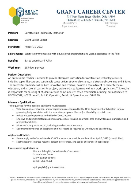 Job Posting: Construction Technology Instructor